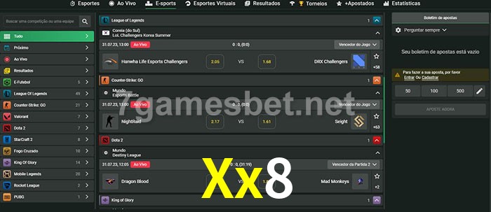 A aposta Xx8 oferece aos jogadores a experiência mais conveniente de apostas em eSports!